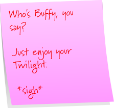 I am of course still your post-it/bloggy friend. I respect that not everyone is a Twilight freak like me! lol. I am going to see New Moon on Friday…
