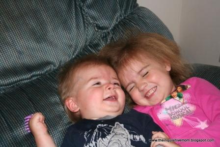 I had one of those “mommy moments” when I came in and saw them playing and laughing together. It reminded me of why I loved having sisters and how wonderful a sibling can be. Plus, I love it when my kiddos are totally in the moment enjoying themselves and not only having fun – but having fun together!