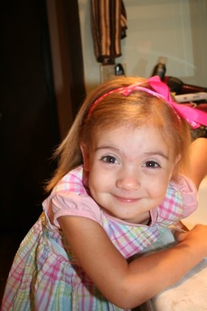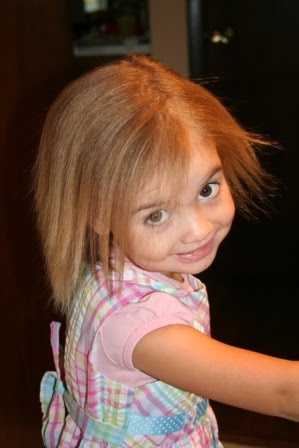 I gave her an evening bath the other night and waited to straighten her hair until morning. It started out like this: