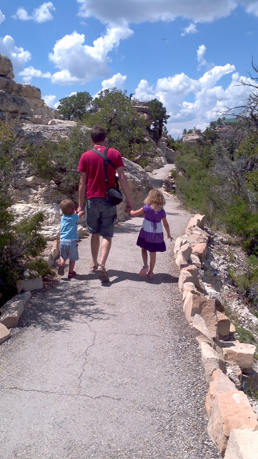 Walking kids to school (Add rain gear and your hands will be especially full).