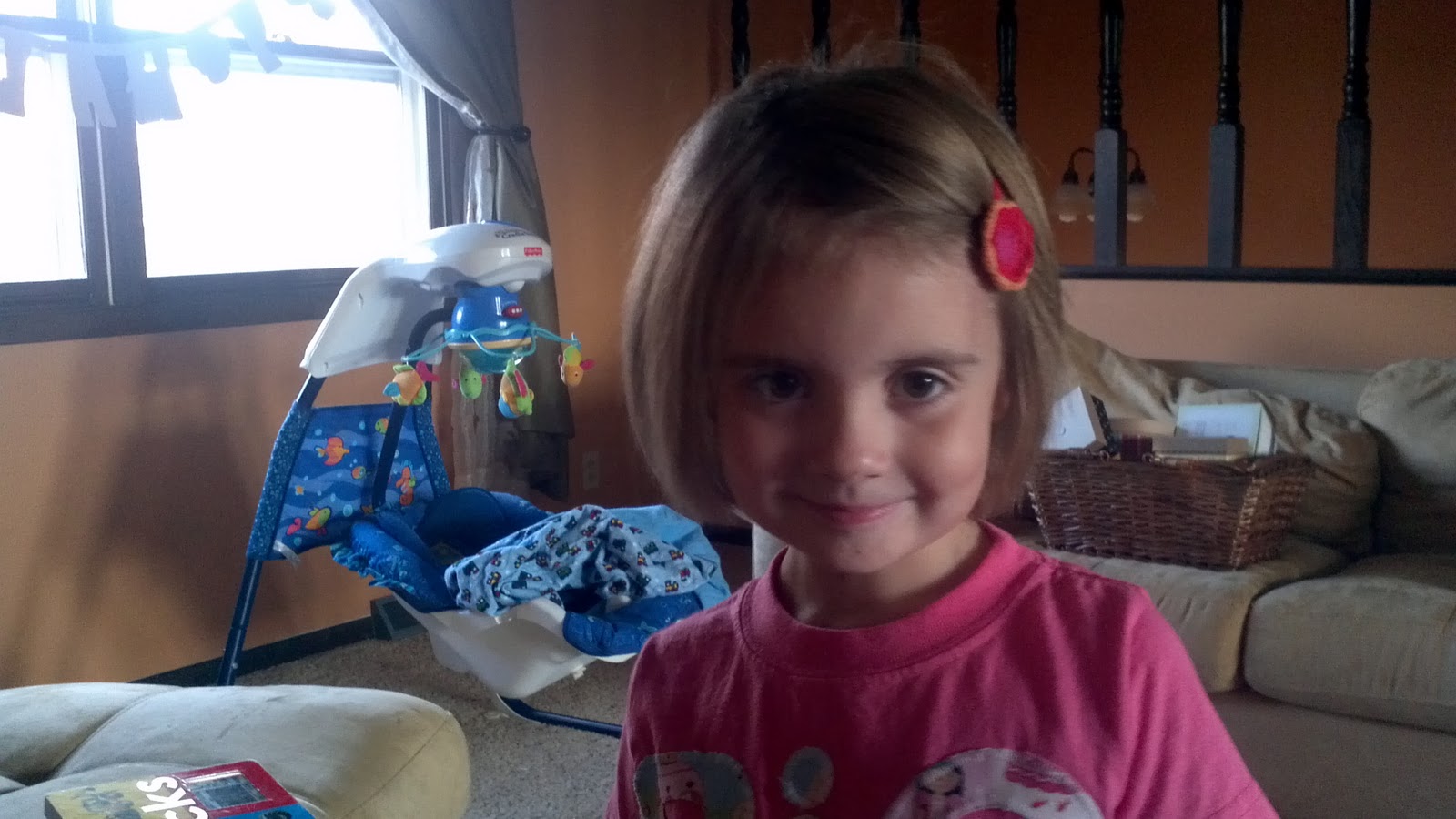 I groan. You see, she picks out her outfits most mornings and I’m cool with that as long as it’s weather appropriate. Once clothes are selected, actually getting dressed a midst all the distractions – cute baby brother, books, what’s in my lunch box?, combing a doll’s hair – can take awhile. Getting 4 people ready to walk the 5 minutes to school each morning is a 45 minute process. At least. And it was time to go.