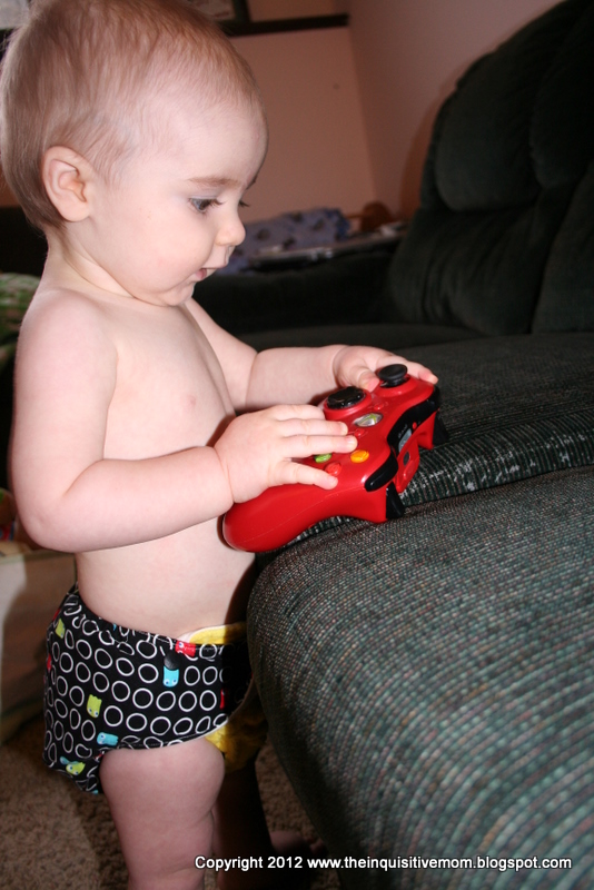 My husband and I were talking about how much we’d love some video game themed diapers and this little Pac Man inspired minky dream appeared on my screen. I decided to order one because the idea of Kai toddling around in the summer with a t-shirt and this fun diaper proved irresistible. I also liked the idea of adding another One Size AI2 diaper to my stash because they are convenient and tend to dry quickly.
