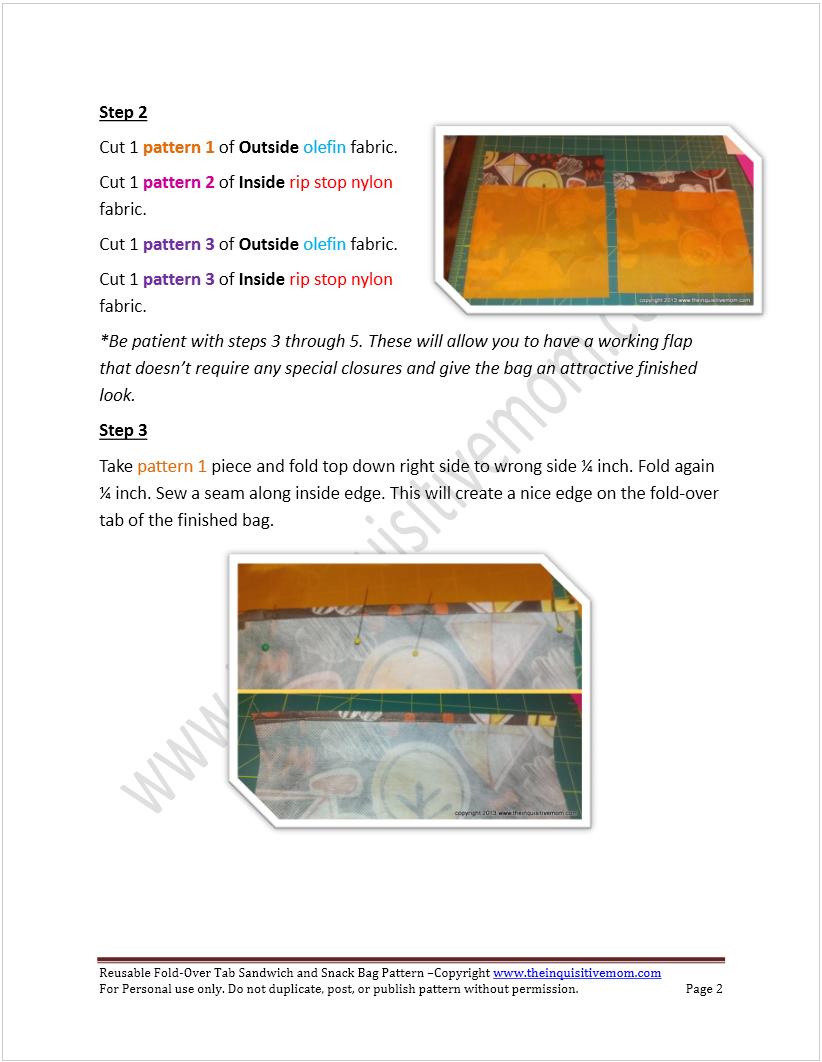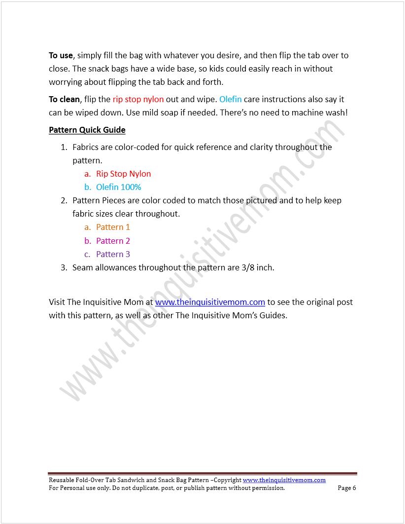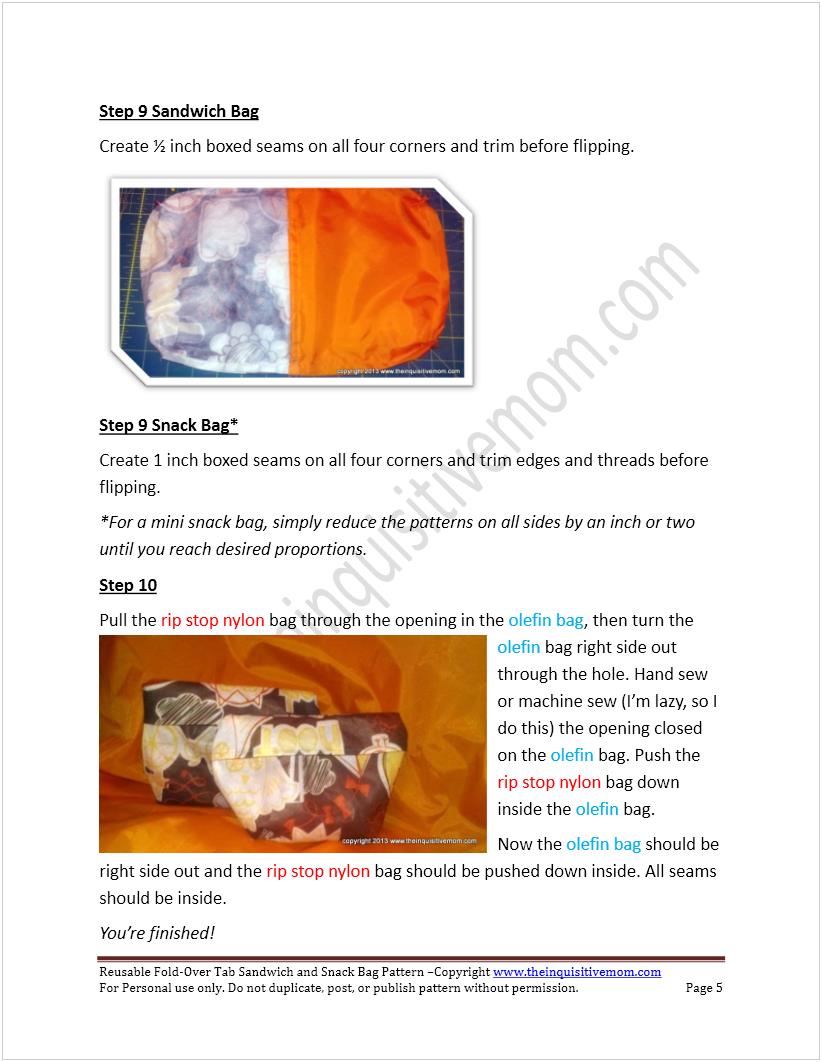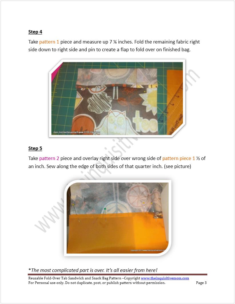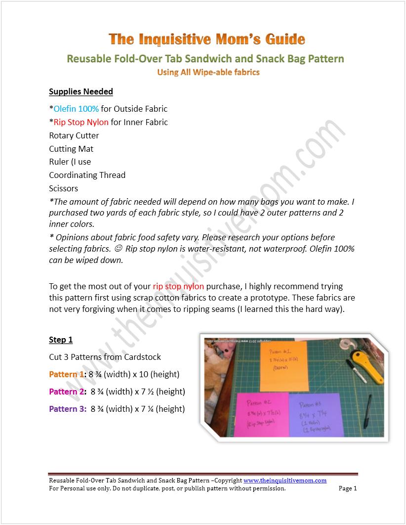 Reusable Fold-Over Tab Sandwich and Snack Bag Pattern