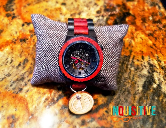 I knew immediately that the JORD Dover Series would be my Father’s Day gift. This series comes with three stunning wood options, but I kept coming back to the Ebony and Rosewood. The contrast between the dark ebony and crimson rosewood is immediately arresting. It’s eye-catching without being ostentatious. The watch face has a Steampunk quality I’m crazy about. The exposed mechanisms give the watch a modern, luxurious feel.