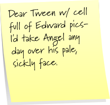 I am with you! Angel is so much better than that squirrely little Edward guy.