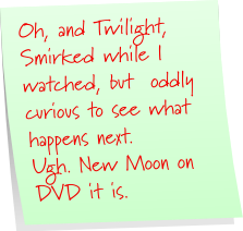 I am of course still your post-it/bloggy friend. I respect that not everyone is a Twilight freak like me! lol. I am going to see New Moon on Friday…