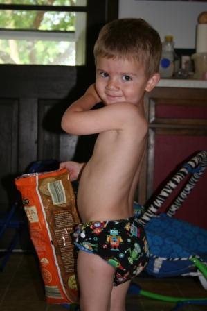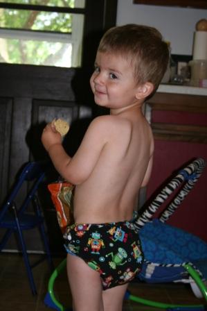 The diaper comes with a long bamboo fleece insert that is absorbent. I only wish that it was wider to contain poopy messes a bit better – with a wider insert, I think you’d only need to worry about rinsing the insert, rather than the entire diaper. We have easily used other inserts (including newborns) with our AI2, though, and they solve this problem.