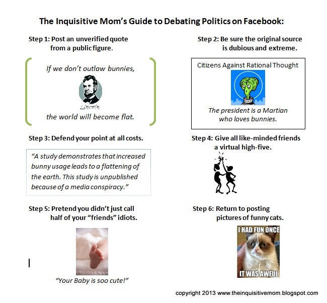Reading all of this, you might be thinking, Listen. It’s my page – I can vent if I want to. And I don’t disagree. Honestly, sometimes it feels good to think of my facebook page as my space. A place to be me and share what I really think. But it’s also a place where I share endearing stories and photos of my kids, connect with family I wouldn’t see otherwise, and keep up with friends who live at a distance. Just like real-life relationships, facebook is a complicated place where I balance relating to and connecting with people I truly care about – people with a diversity of views, opinions, and ideals. Just like I try not to dump every thought and belief out there in real life, I hope to practice a little restraint online as well.